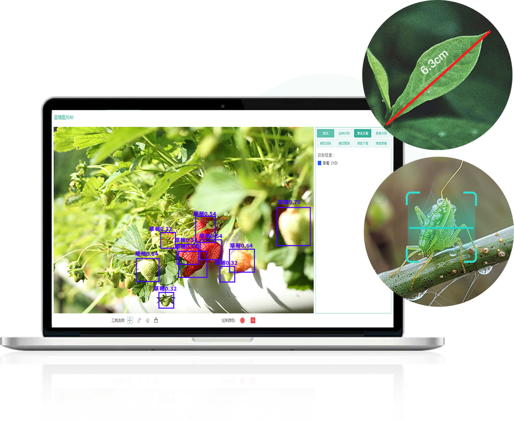 自研AI算法平臺,增強(qiáng)圖像采集、分析計算和數(shù)據(jù)智能處理能力,提供測定植株高度、葉片大小、識別病蟲害、計算果實數(shù)量等功能,更有用戶自主AI模型訓(xùn)練、推理功能,為作物生產(chǎn)決策、病蟲害識別診斷、產(chǎn)量預(yù)估、災(zāi)害監(jiān)測等作業(yè)需求提供了更精準(zhǔn)、更智能的解決方案,高效助力作物生產(chǎn)管理工作。