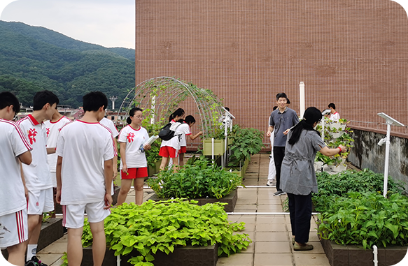 針對校園光照條件、排水系統(tǒng)、屋頂承重等進行全面評估,根據(jù)空間的特點和農(nóng)作物的生長需求,進行科學規(guī)劃、精細設計達到高效空間利用。